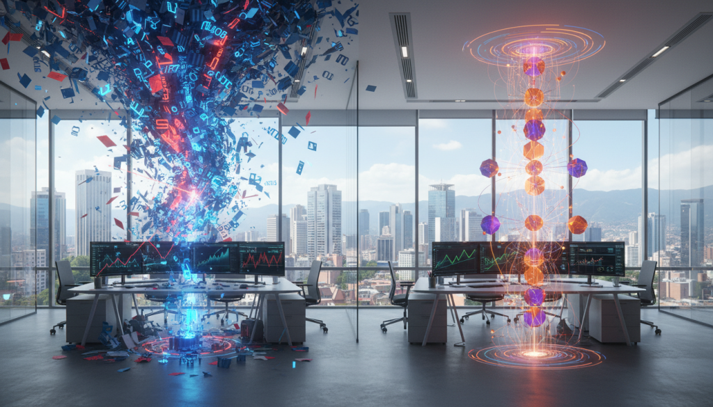 Google ha evolucionado de un motor de indexación a un motor de comprensión semántica. El SEO tradicional genera un caos de keywords obsoleto. Nosotros, en Agencia de Marketing Digital Colombia, diseñamos estrategias de Agencia aeo que escalan autoridad.